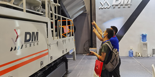 ?在三天展會上,上海東蒙所在的T-57展位可謂是人氣非凡,履帶式移動立軸沖擊破碎站DM-V95也成為全場焦點(diǎn)。該設(shè)備為新一代高效立軸沖擊式破碎機(jī),又俗稱制砂機(jī)或整形機(jī)。廣泛應(yīng)用于砂石料場、攪拌站、干粉砂漿、建筑垃圾破碎等行業(yè),為高速公路、鐵路、建筑、混凝土攪拌站提供優(yōu)質(zhì)砂石骨料。設(shè)備加工成品呈立方體,粒形好、級配合理、細(xì)度模數(shù)可調(diào),特別適合人工制砂和石料整形,吸引了大量現(xiàn)場客戶和專業(yè)觀眾駐足流連。